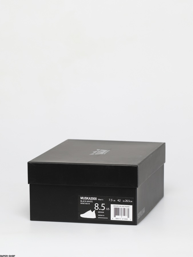 Details - Supra Muska 2000 Schuhe (schwarz Weiß) Schuhe Material: Narbenleder, Wildleder, Canvas, Kunstleder, Nubuk Schnitt: Halbschuhe Farbe: Schwarz Zusätzlich Wärmend